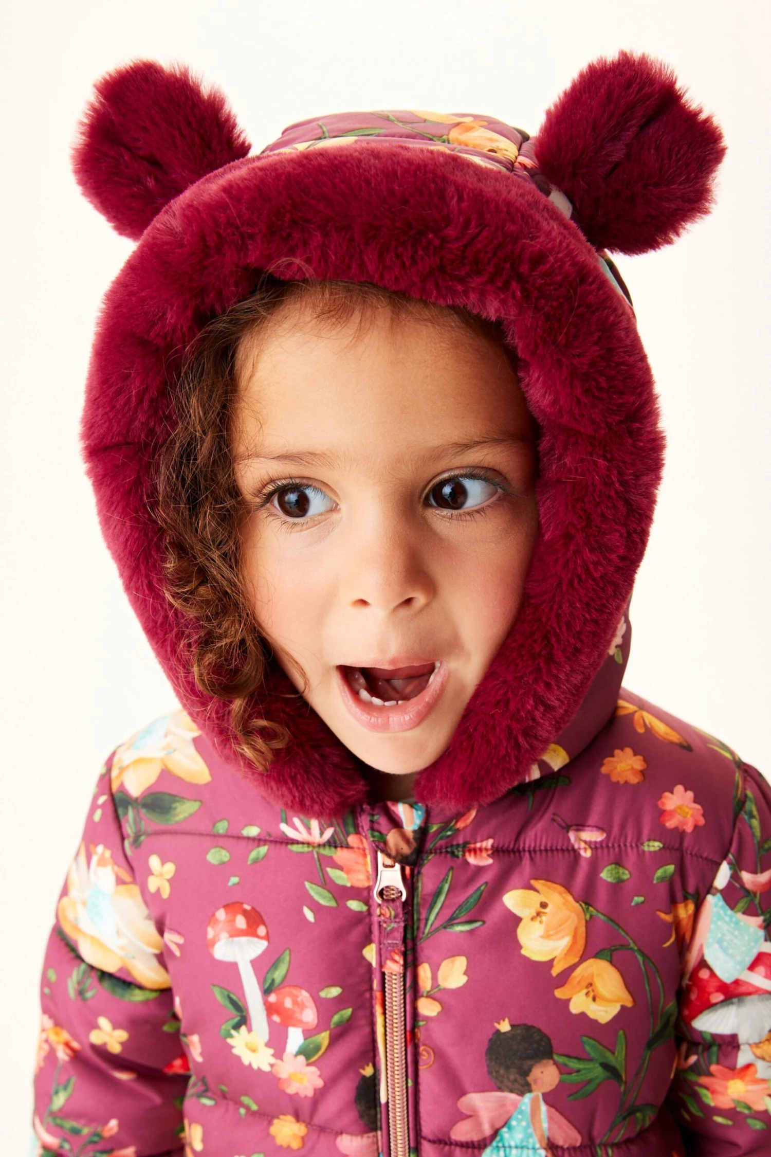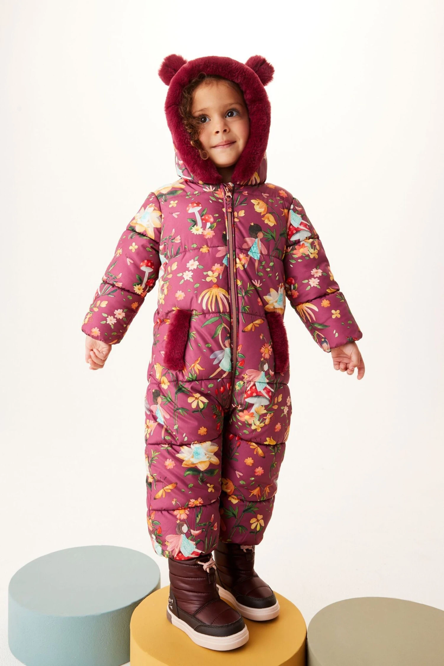 Beerenrot – Next Spritzwasserabweisender Schneeanzug Mit Fellimitat-Kapuze Und Blumenprint (3 Monate Bis 7 Jahre)