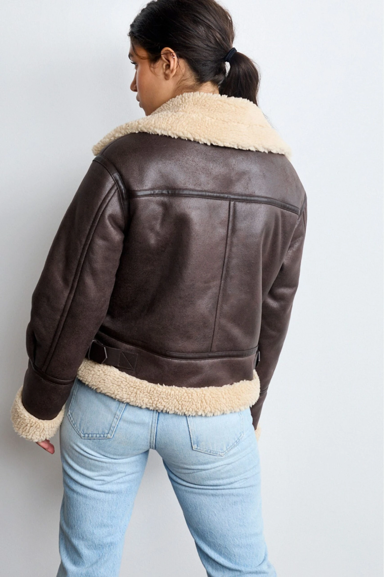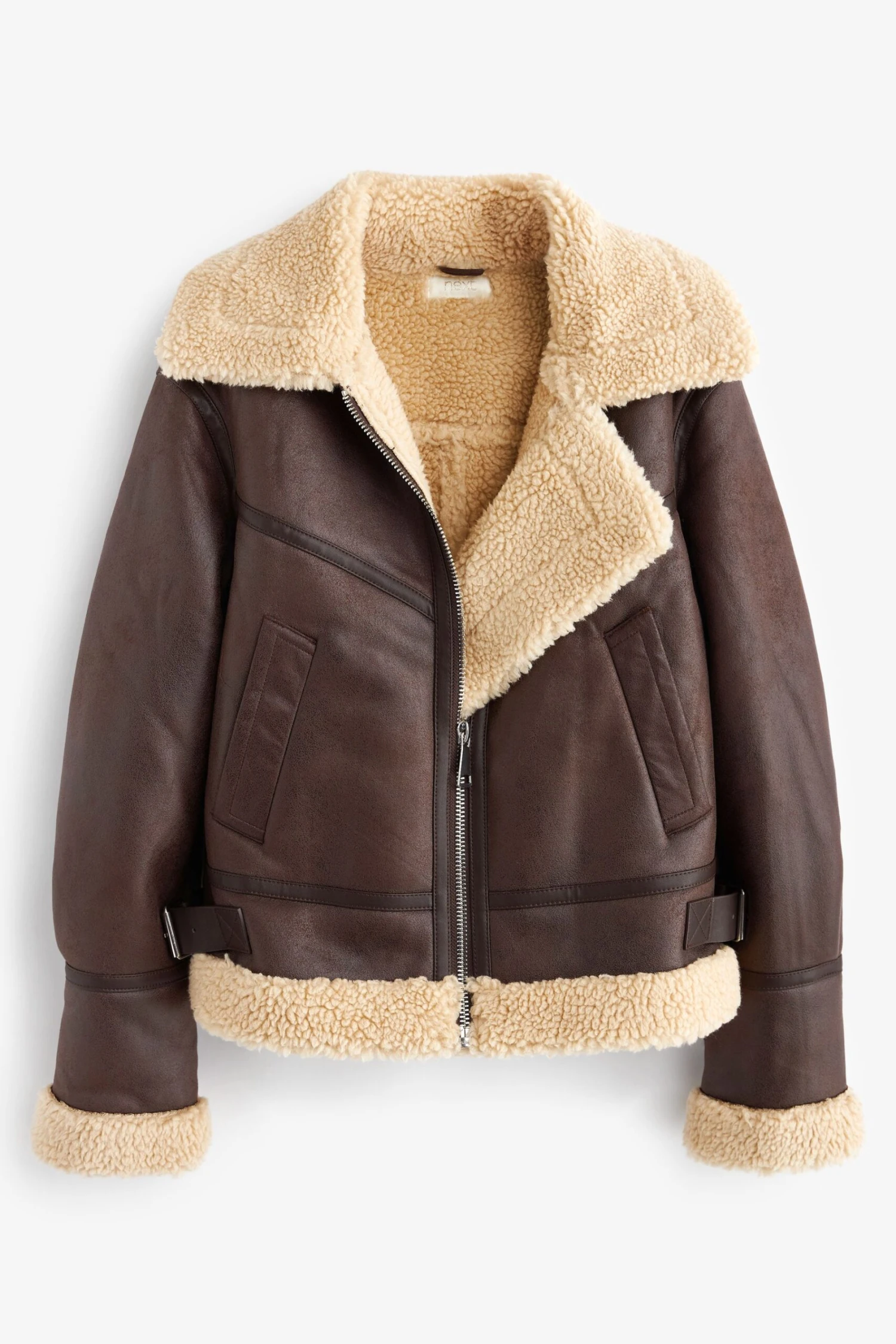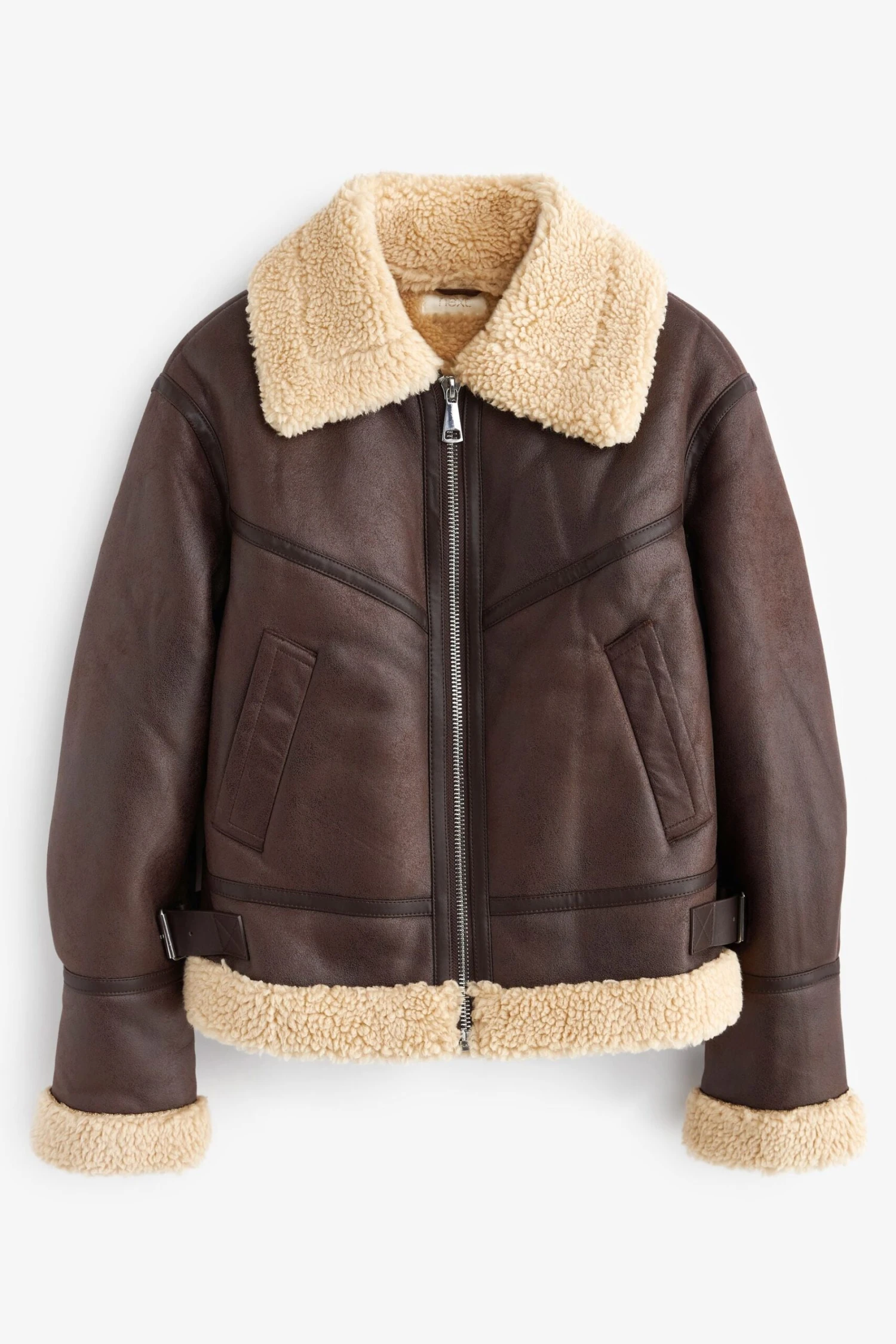 Braun – Next Pilotenmantel Aus Lederimitat Mit Teddyfellfutter