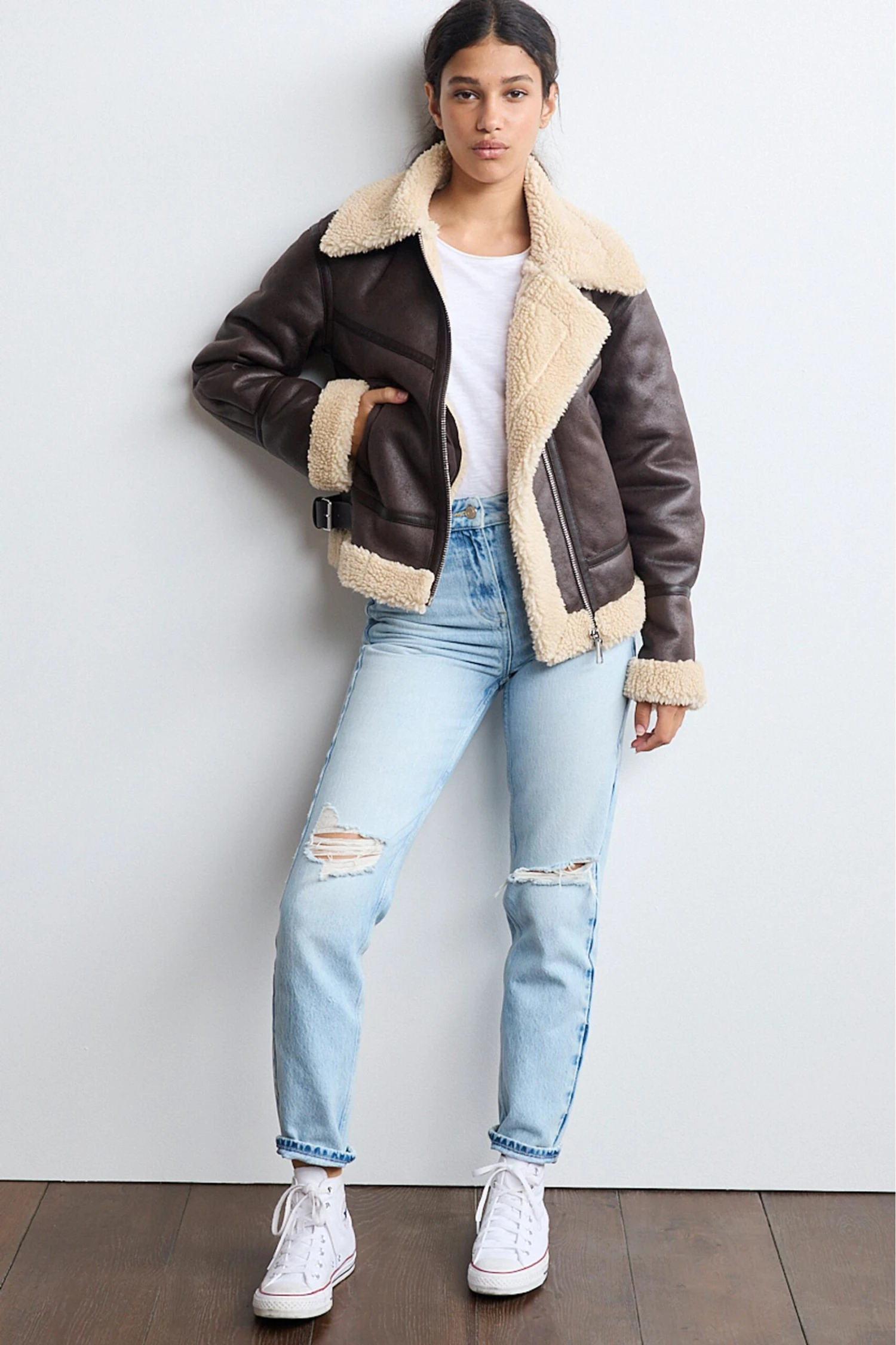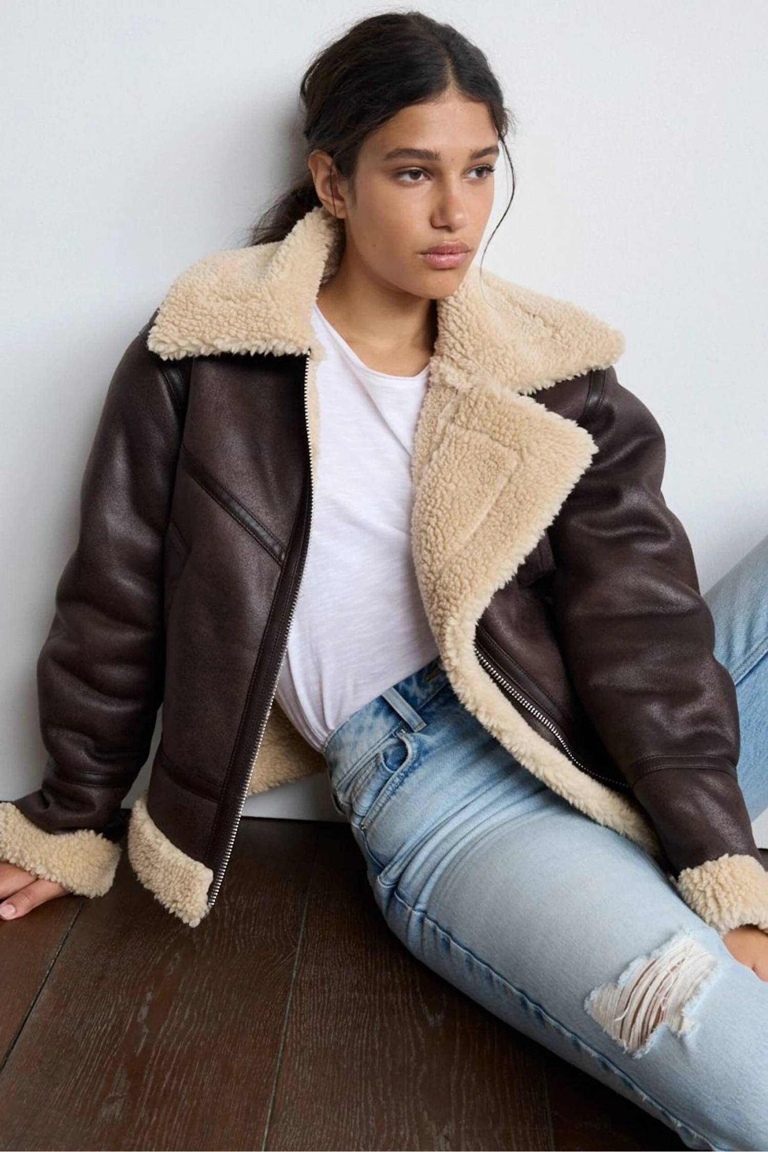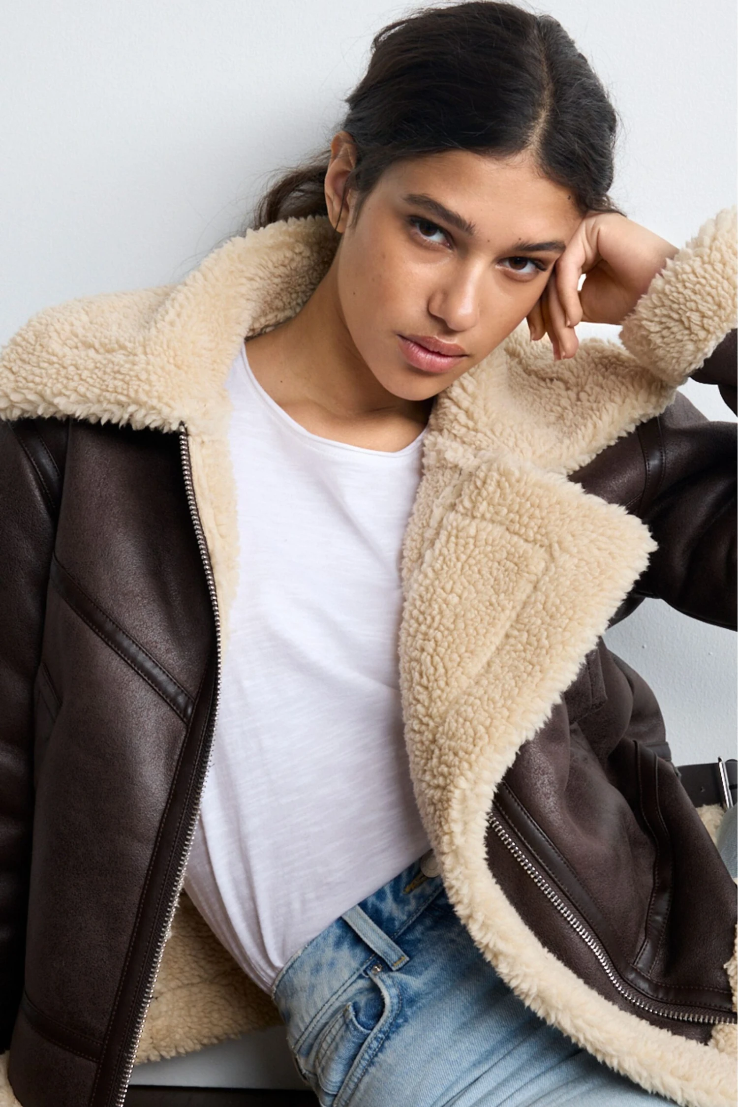 Braun – Next Pilotenmantel Aus Lederimitat Mit Teddyfellfutter