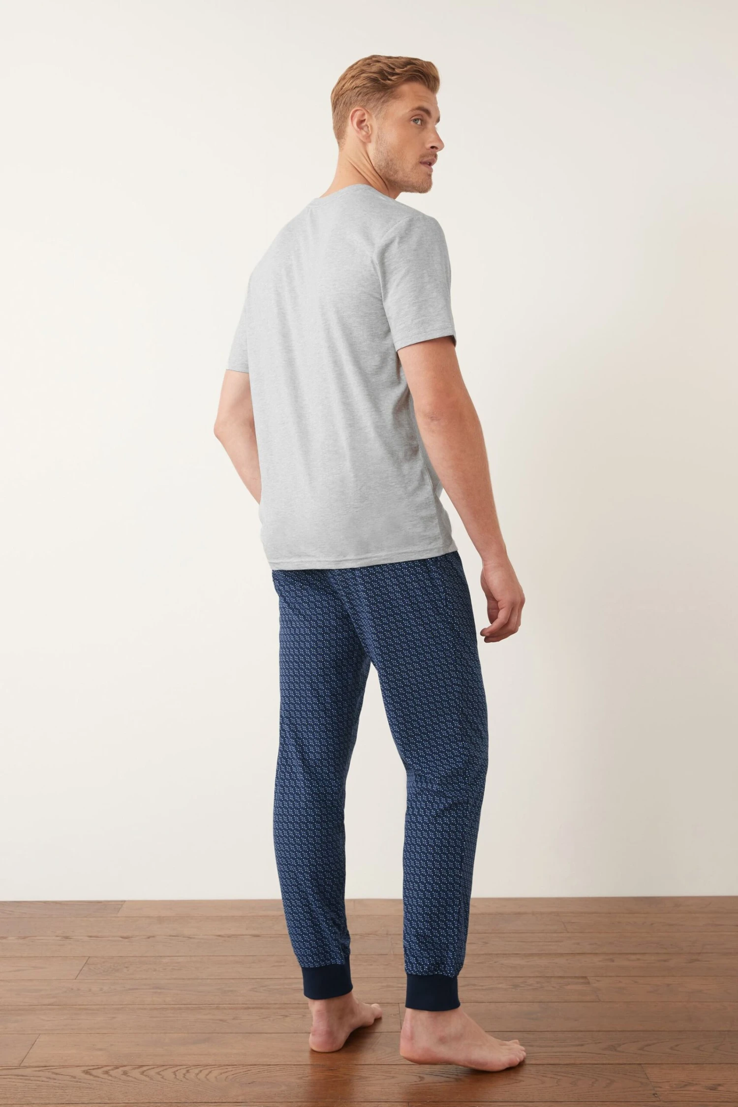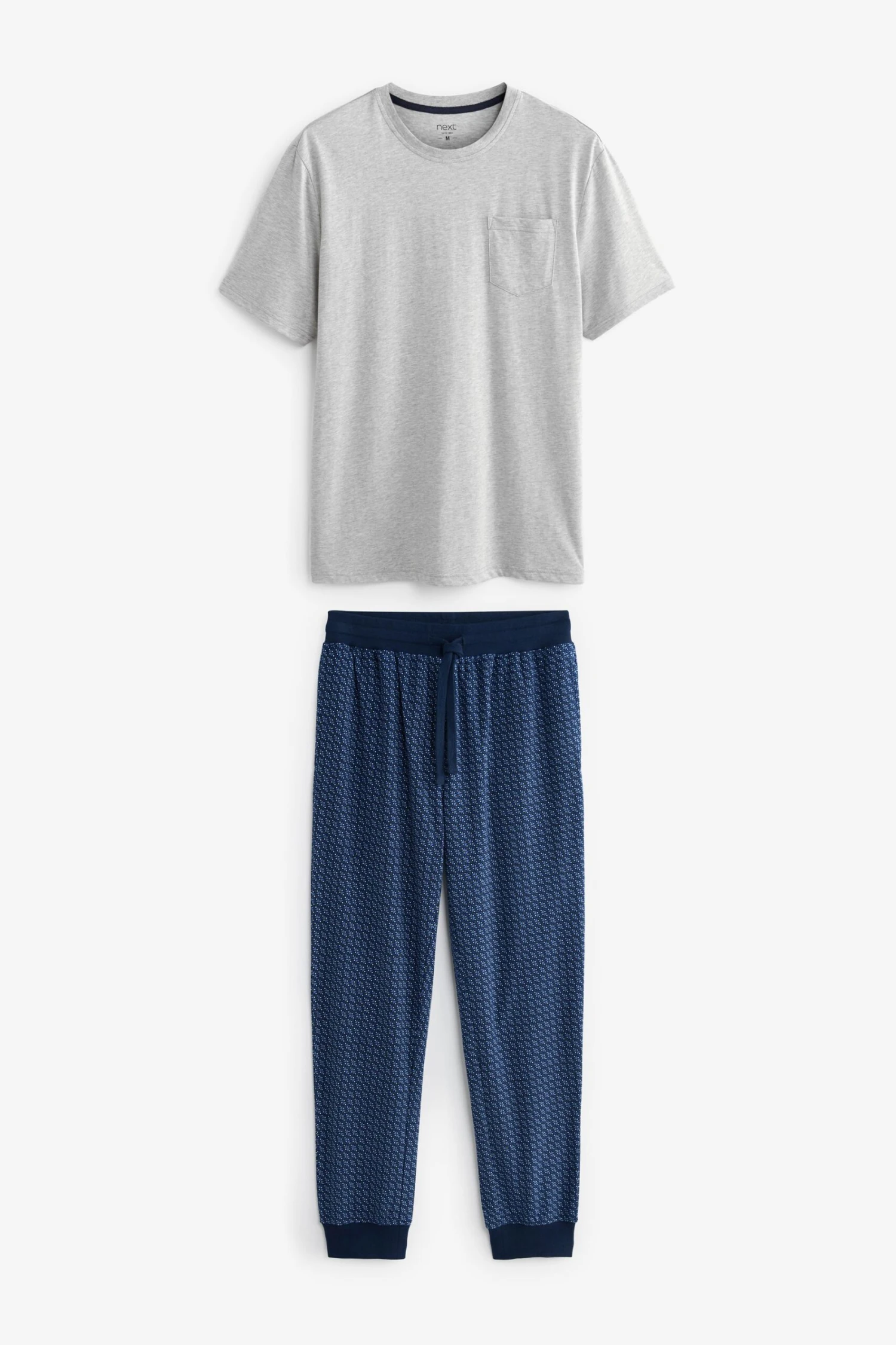 Grau/Blau, Geometrisches Muster – Next Motion Flex Kuscheliger Pyjama Mit Bündchen