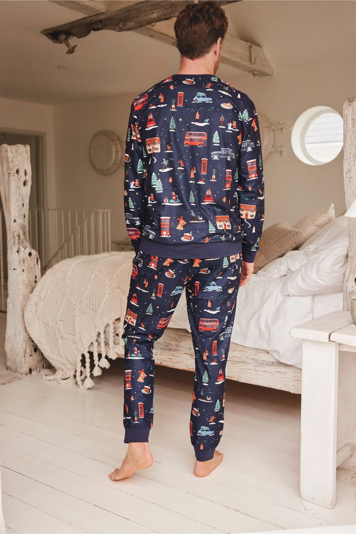 Marineblau – Next Herren Pyjama Mit Londoner Bus, Teil Der Familienkollektion