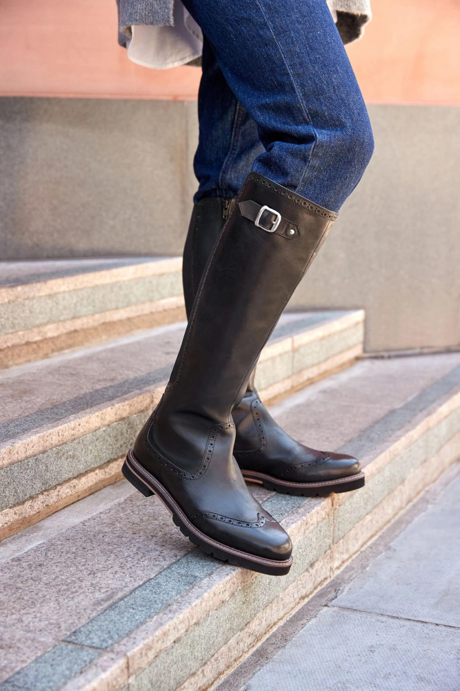 Diese Stiefel vereinen den zeitlosen Stil eines Budapesters mit modernem kniehohem Design.