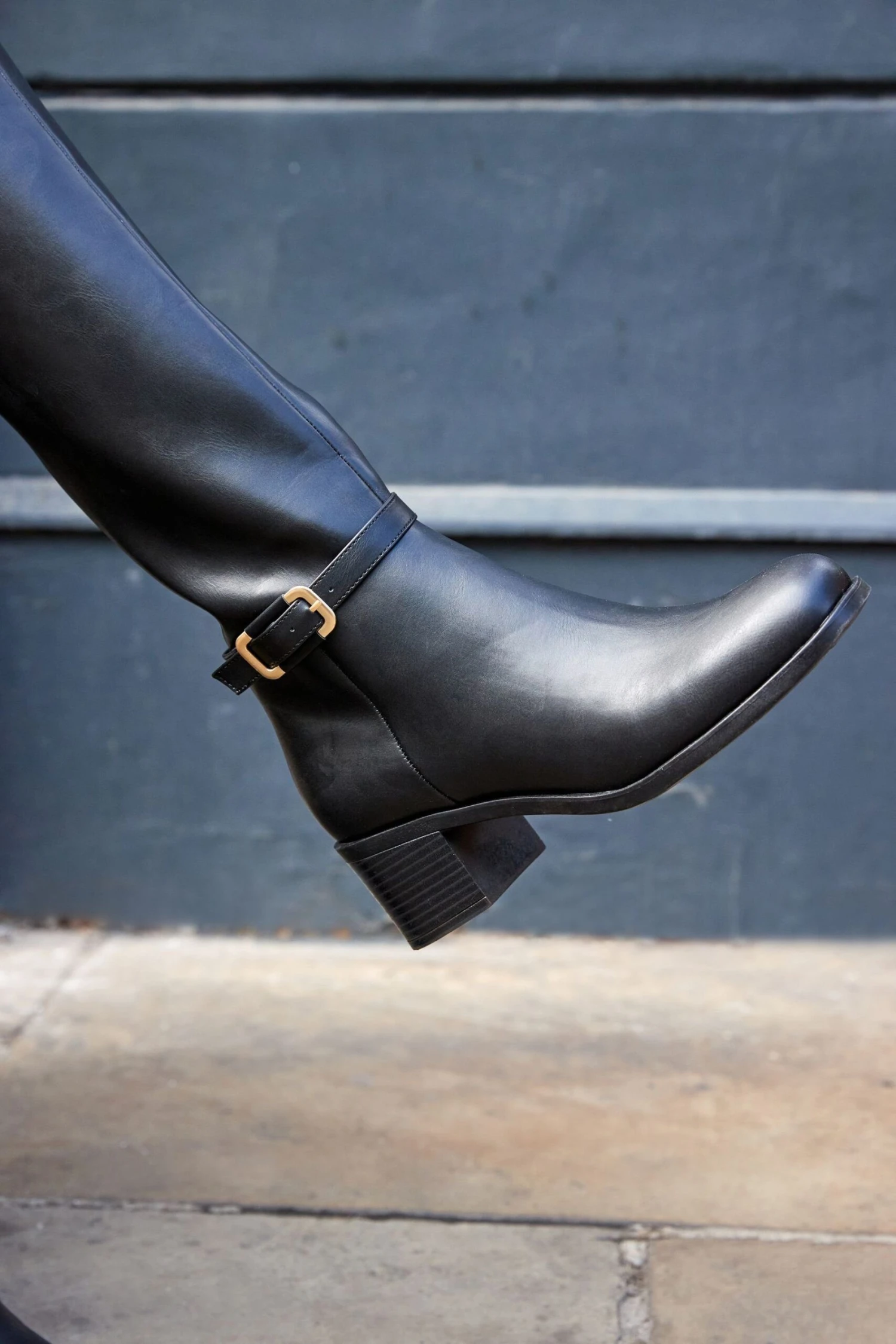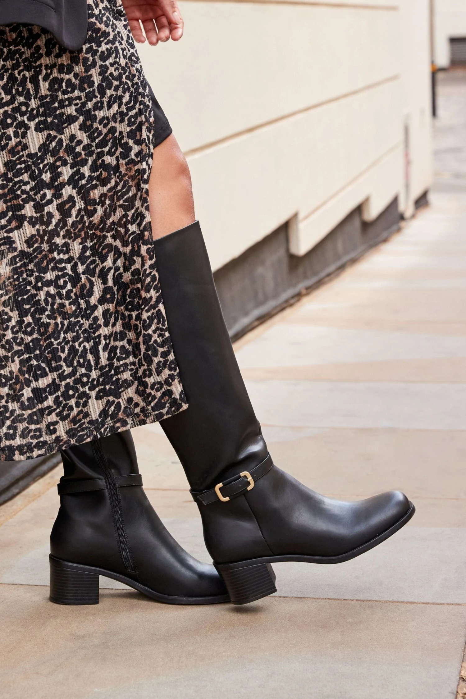 Elegante Stiefel bis zum Knie mit goldfarbenem Schnalle am Knöchelriemen. Mit Blockabsatz, seitlichem Reißverschluss zum einfachen An- und Ausziehen und Forever Comfort® Schaumeinlagen, die ganztägigen Tragekomfort garantieren.