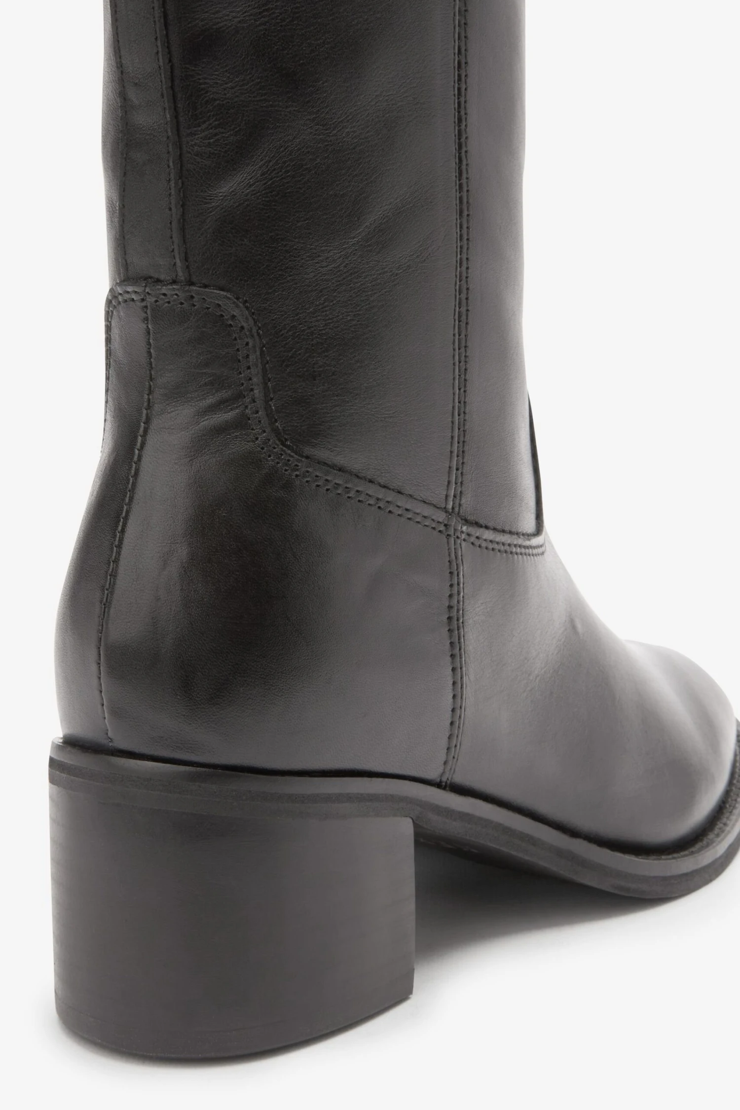 Forever Comfort Kniehohe Lederstiefel, Blockabsatz.