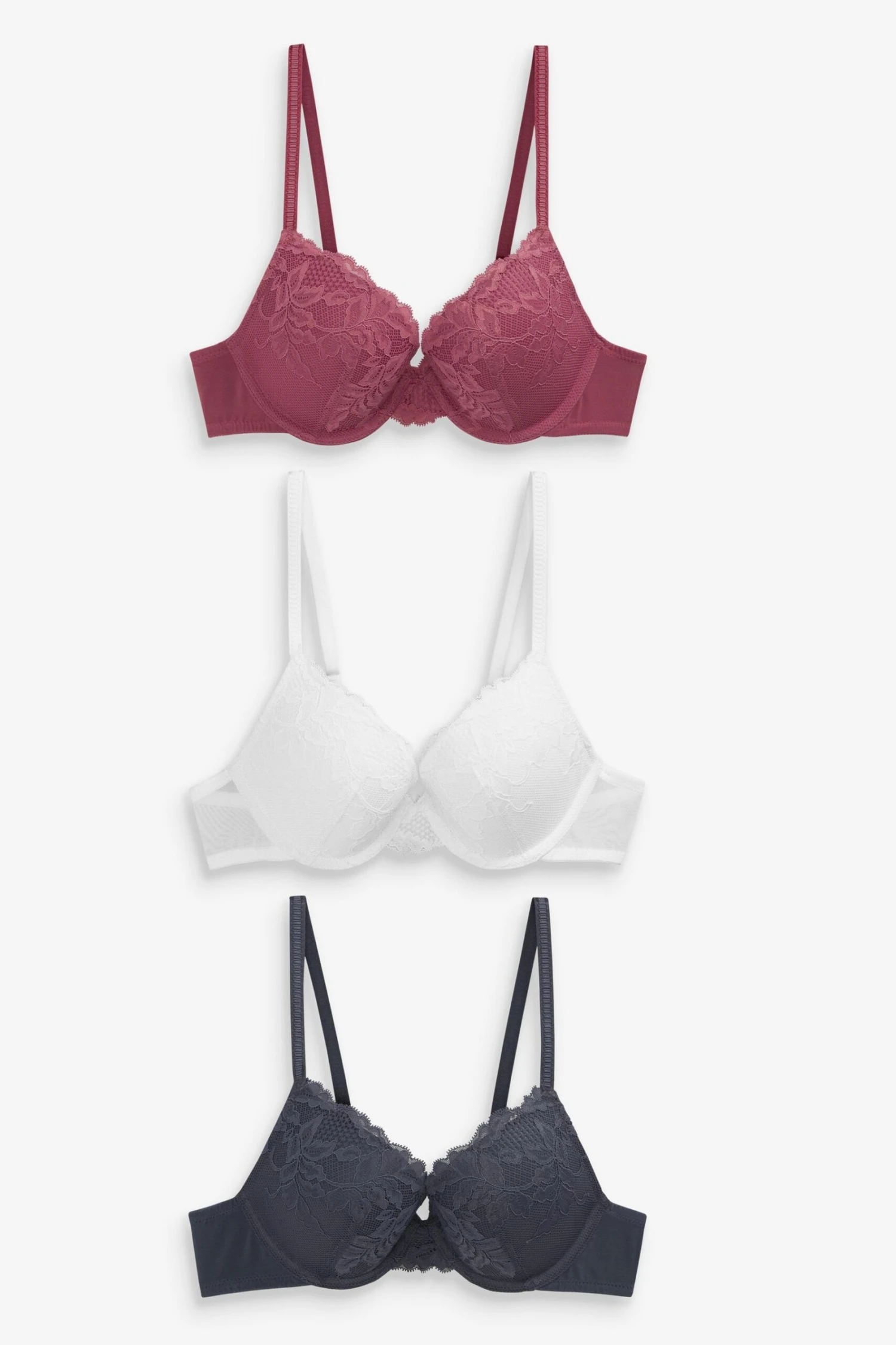 Push-up-Dekolleté-BHs aus Spitze, 3er-Pack.