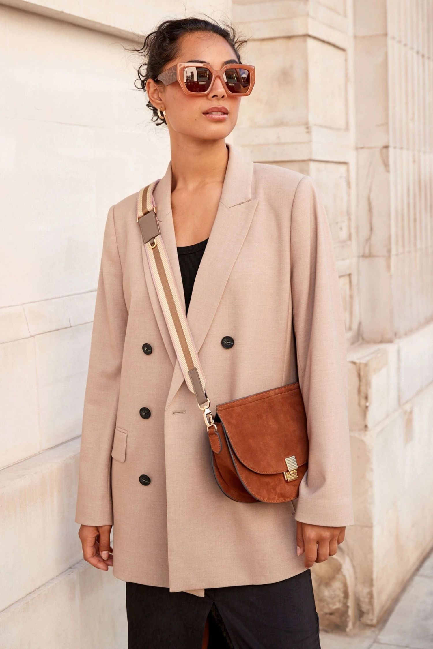 Dieser zweireihige Blazer von Rochelle Humes hat ein steigendes Revers und betonte Schultern.