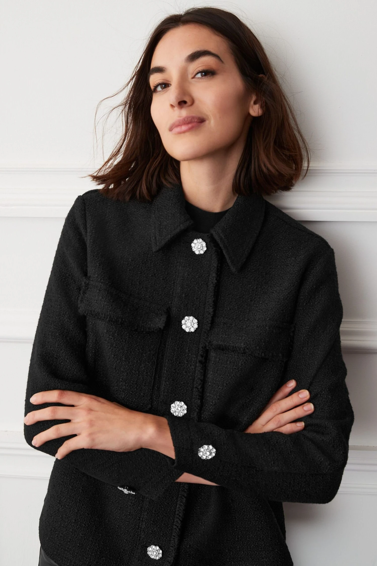 Hemdjacke aus Bouclé mit Zierknöpfen.