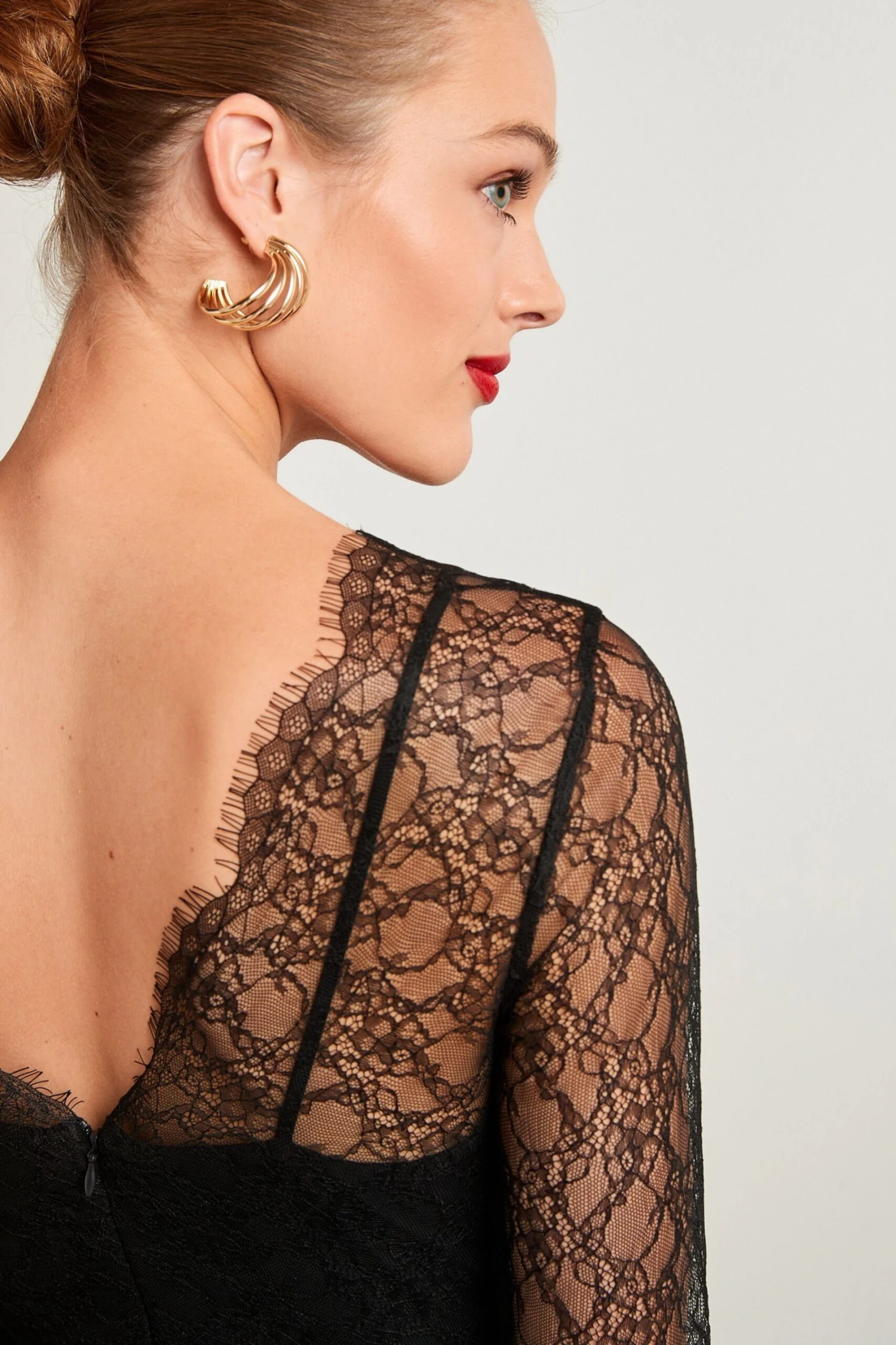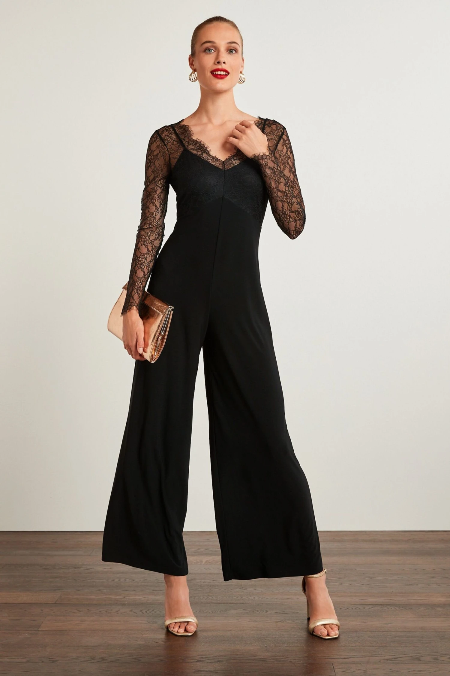 Langärmeliger Spitzen-Jumpsuit.