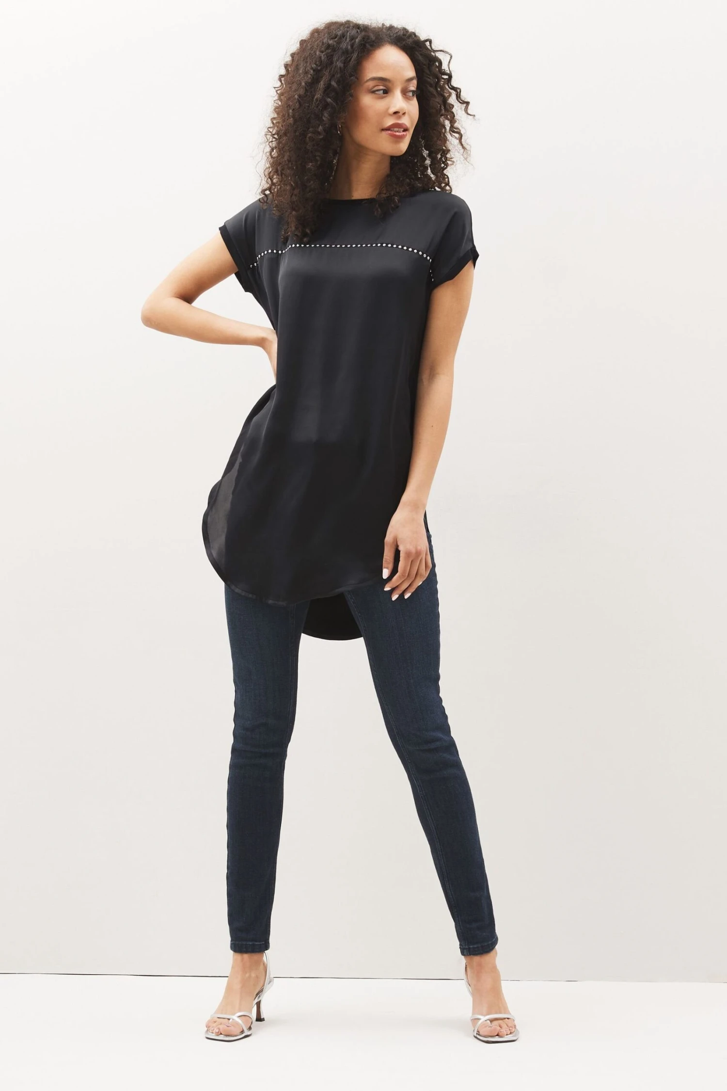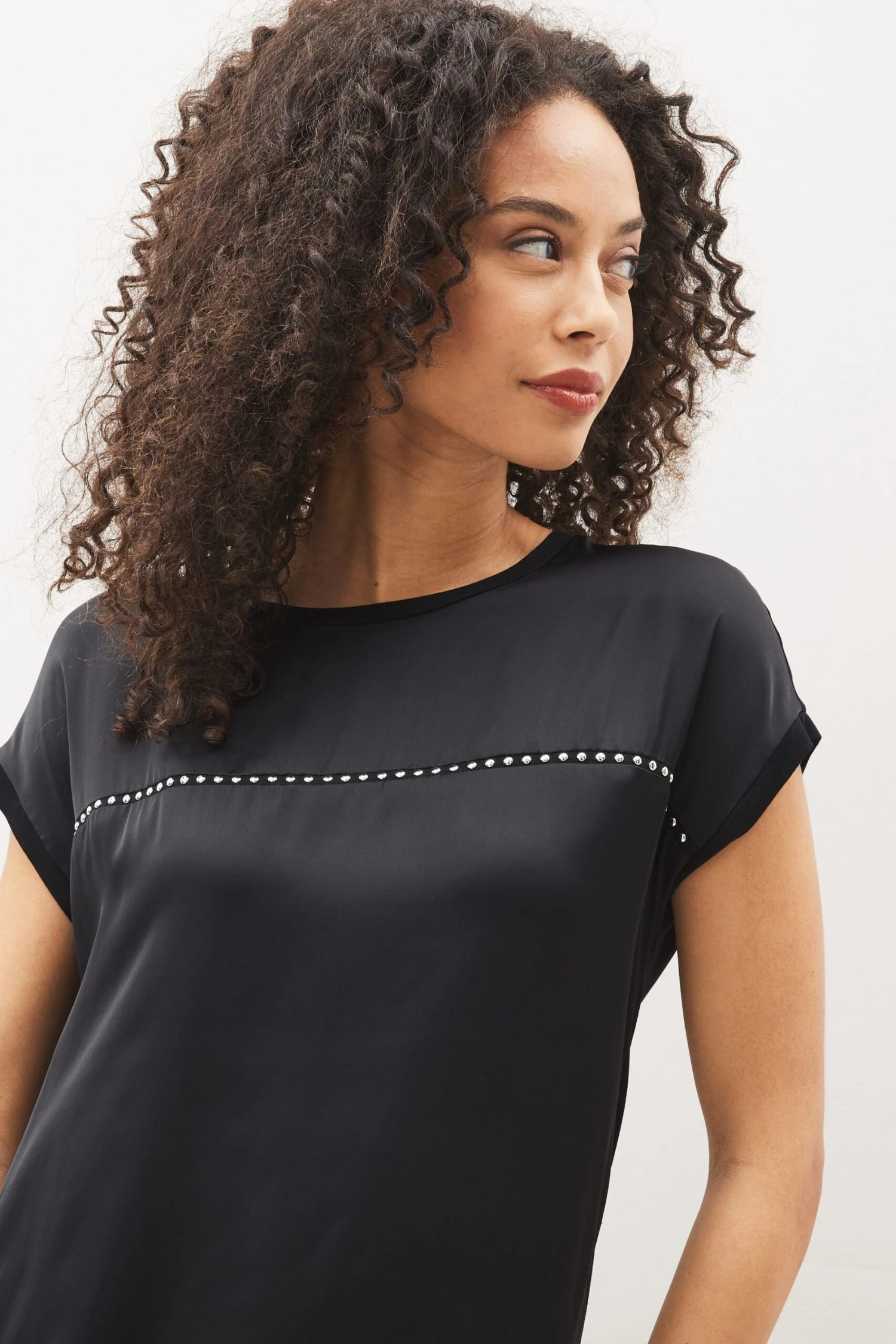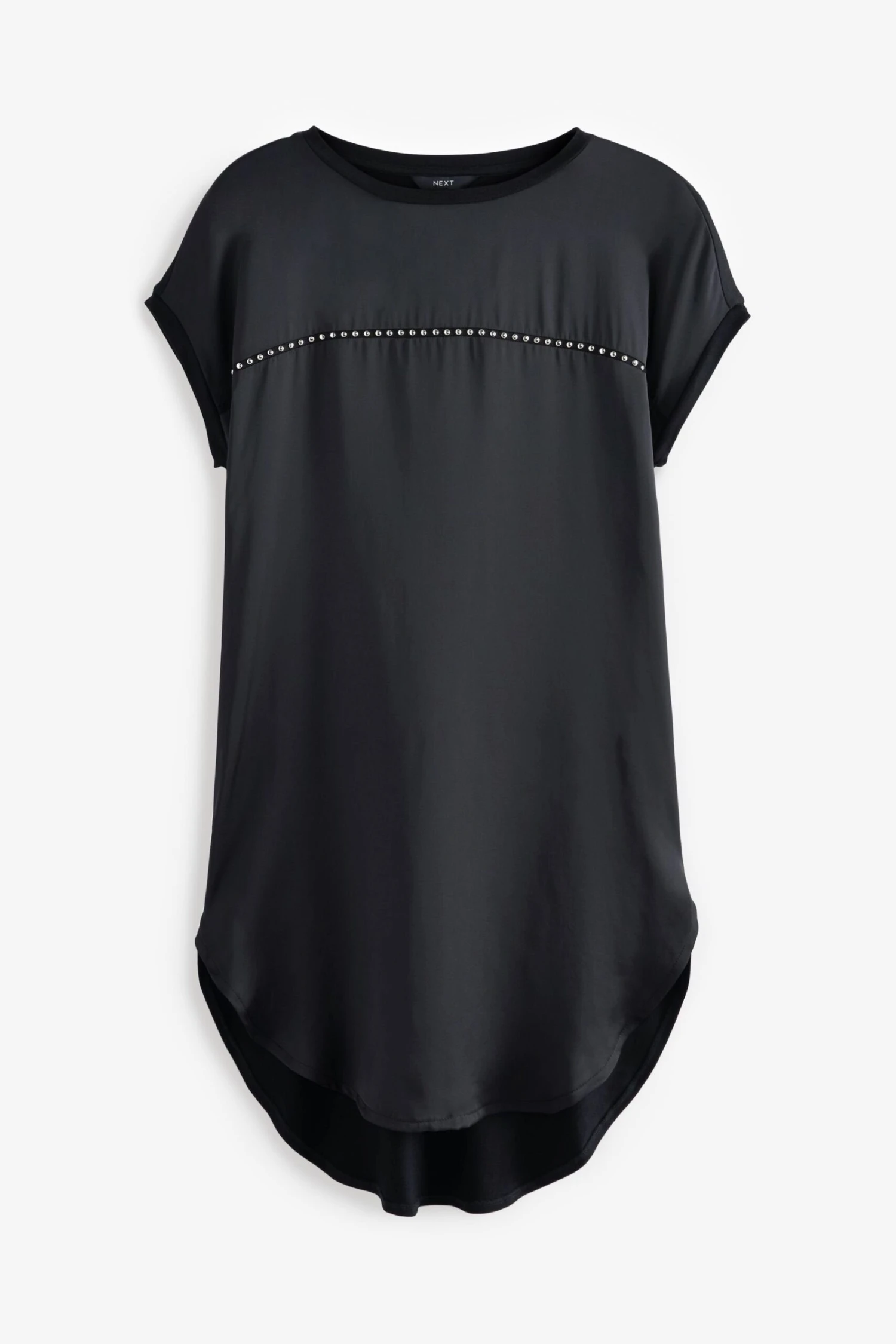 Tunikatop mit Nieten, Web-Front + Jersey-Rückseite.