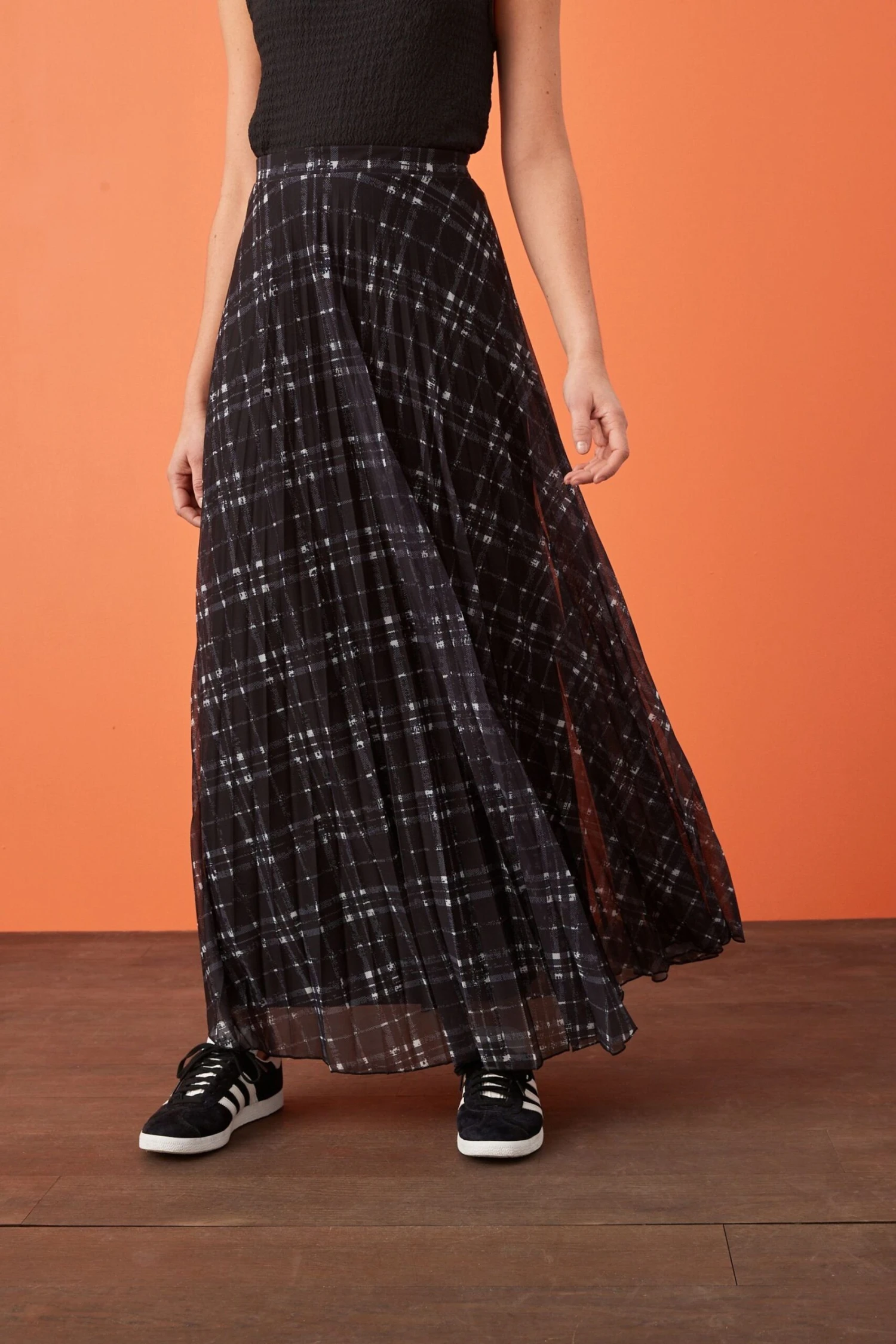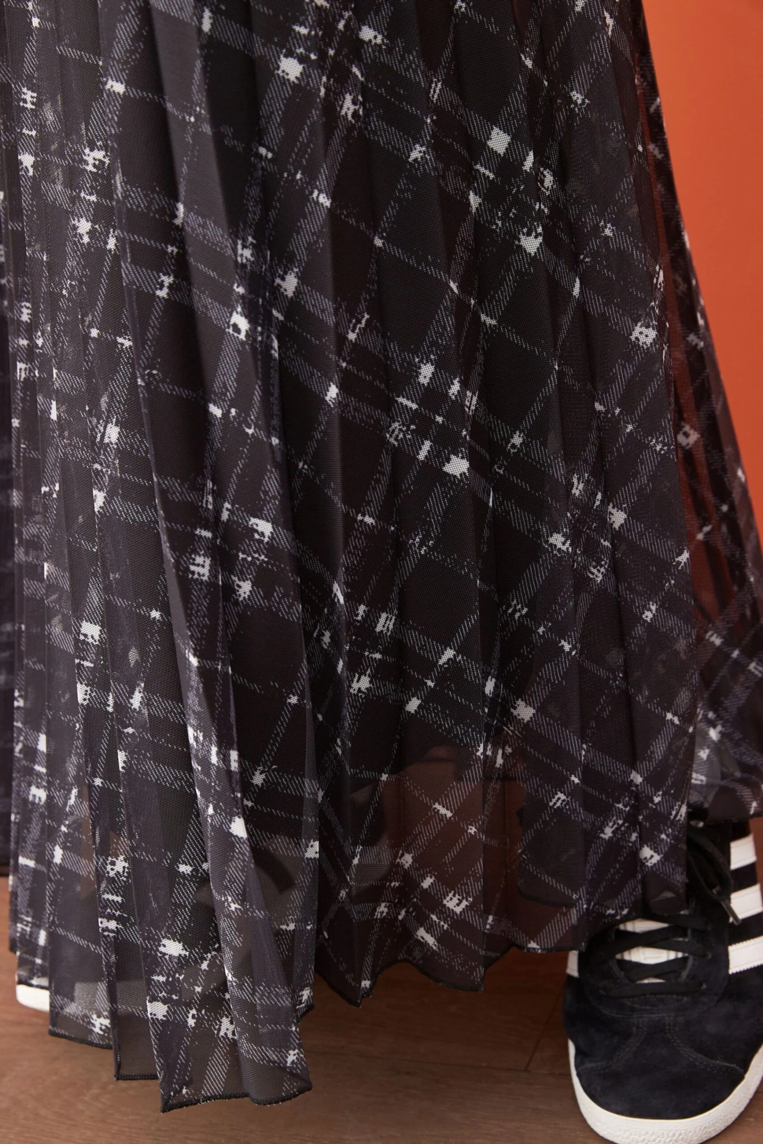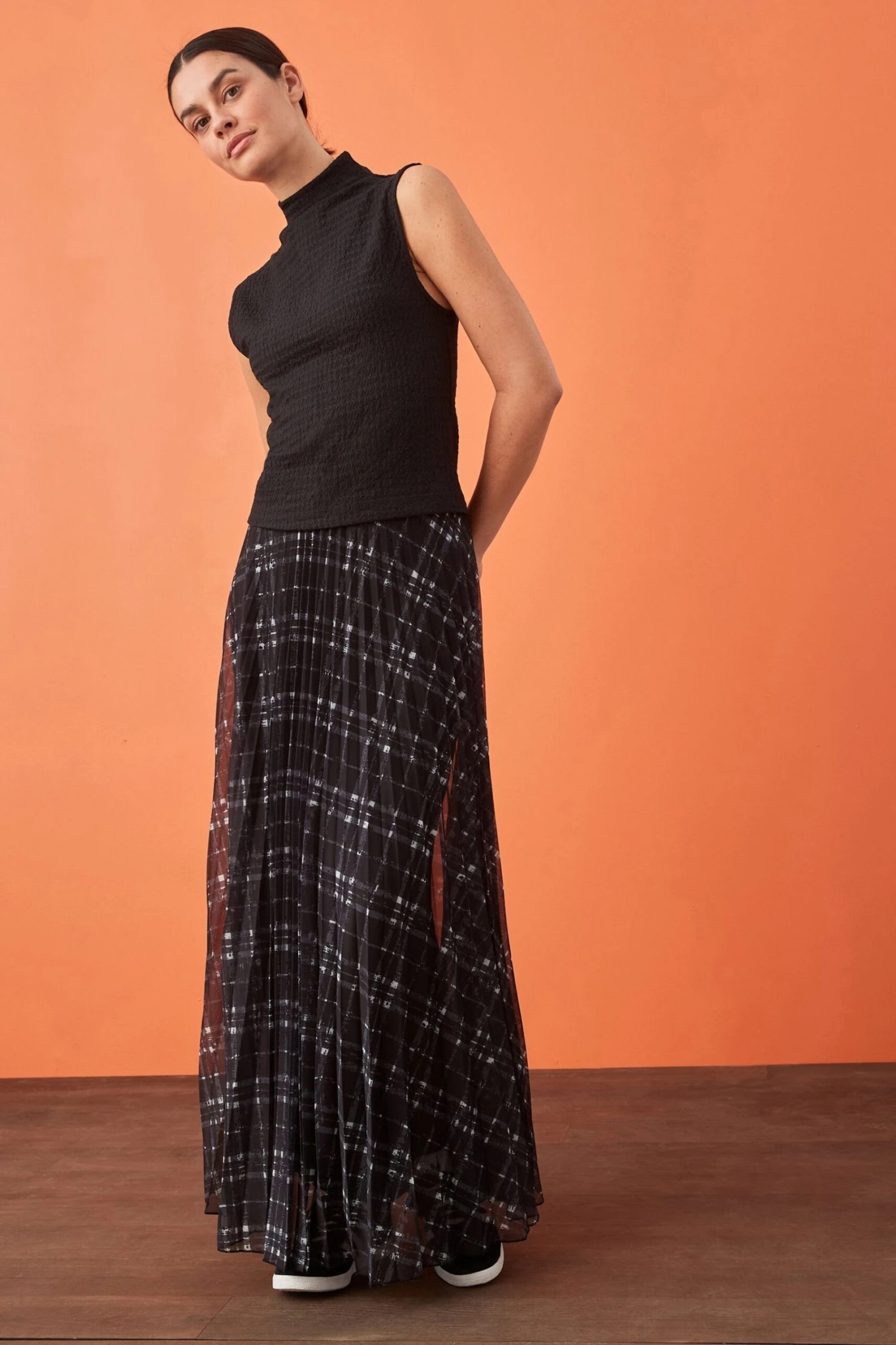 Plissierter Maxirock aus Mesh.