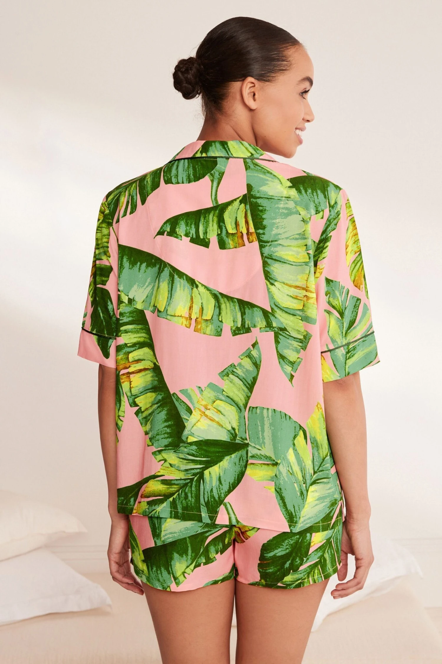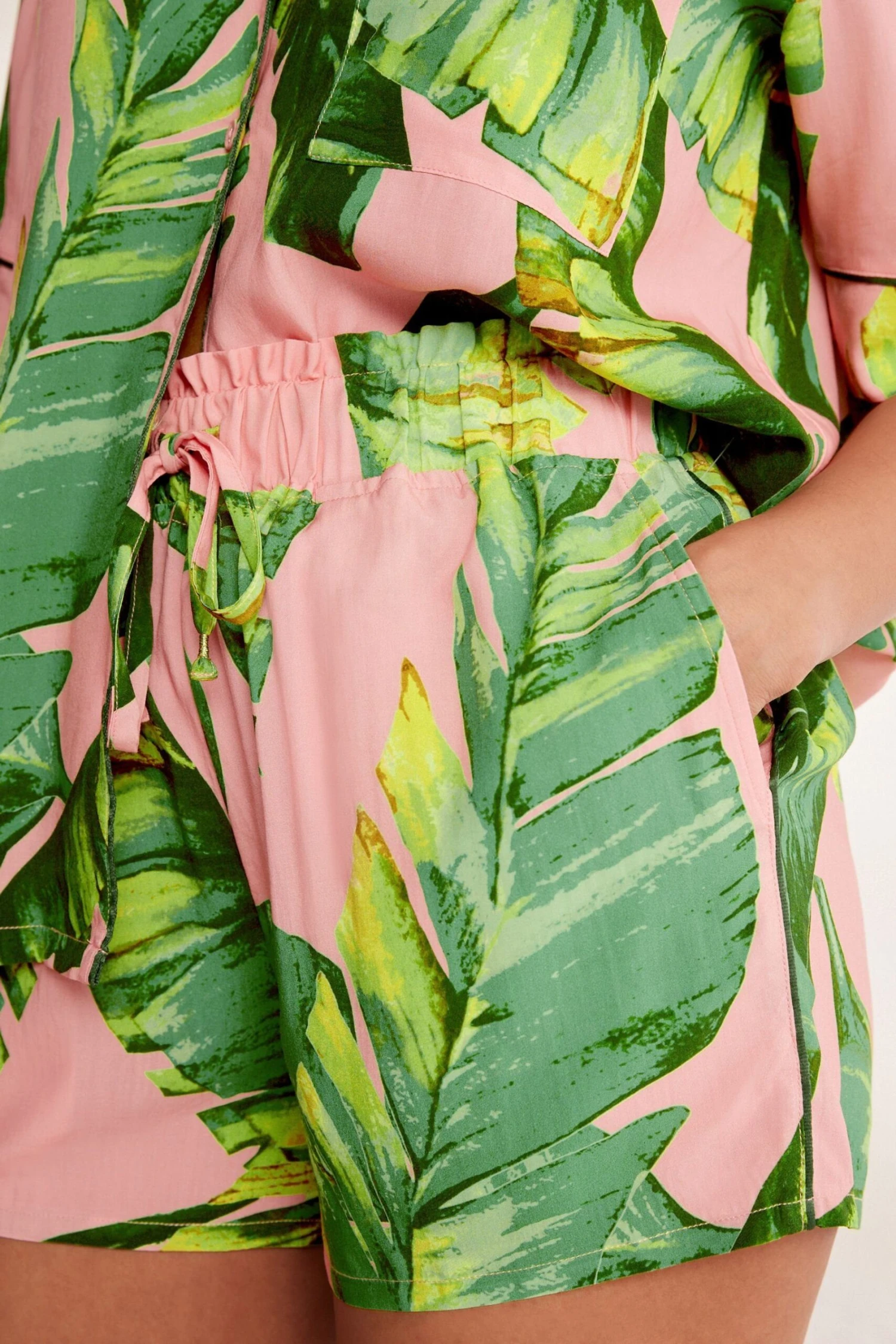 Durchgeknöpfter Shorty-Schlafanzug aus Webmaterial.