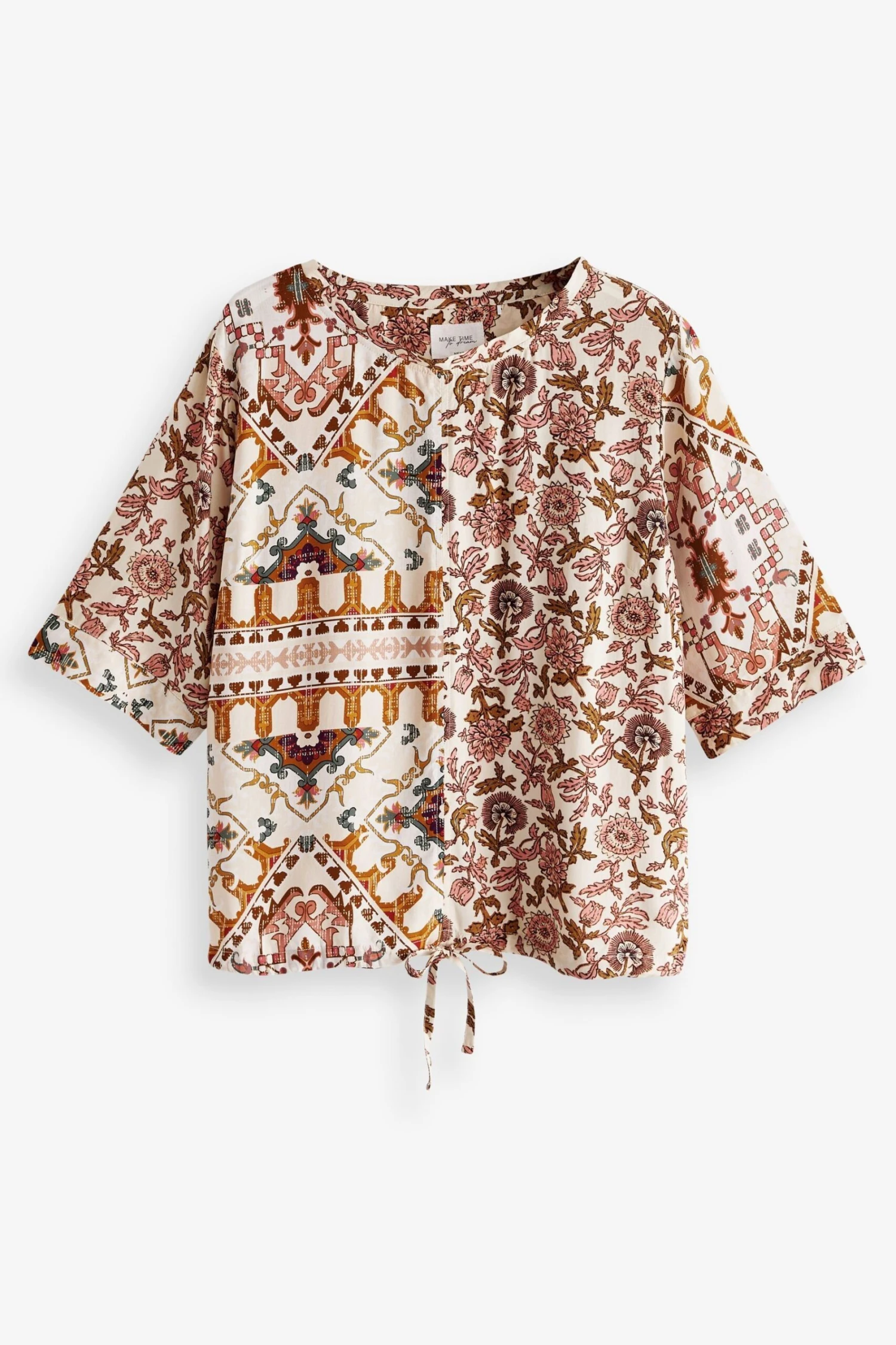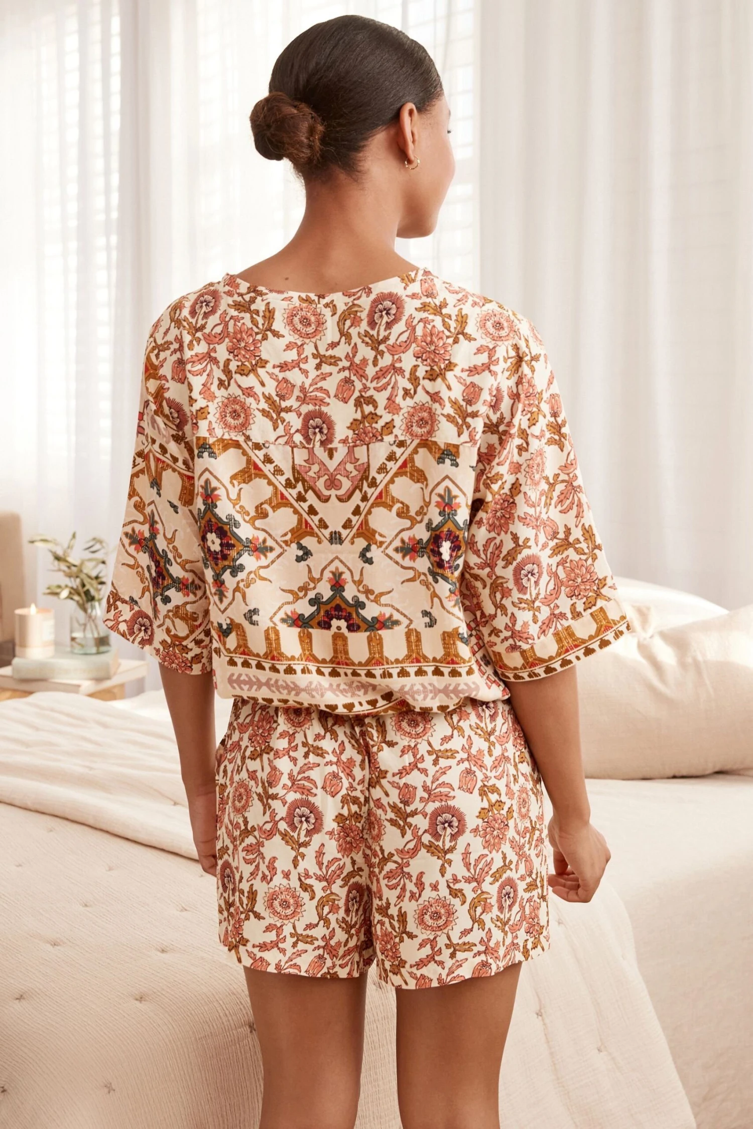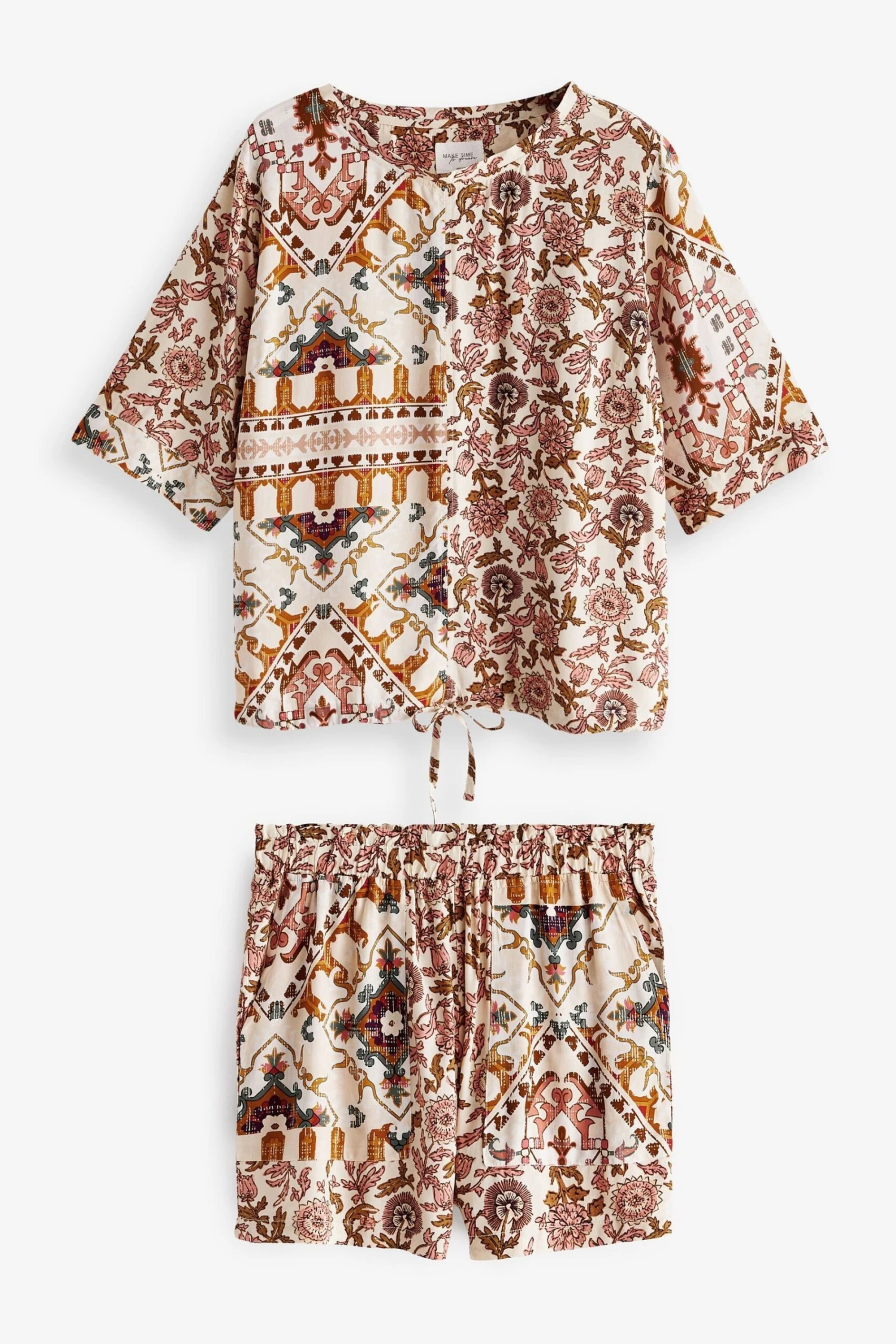 Gewebter Pyjama mit Shorts und Ballonsaum.