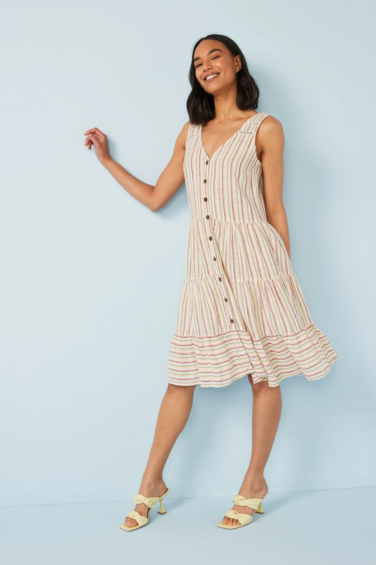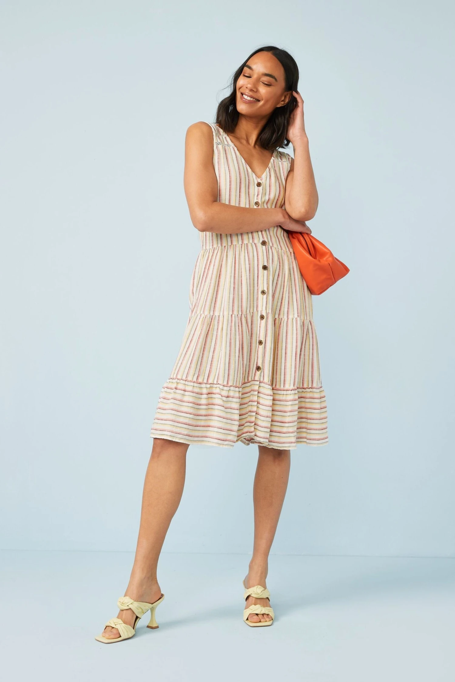 Durchgeknöpftes Kleid aus Leinenmischgewebe.