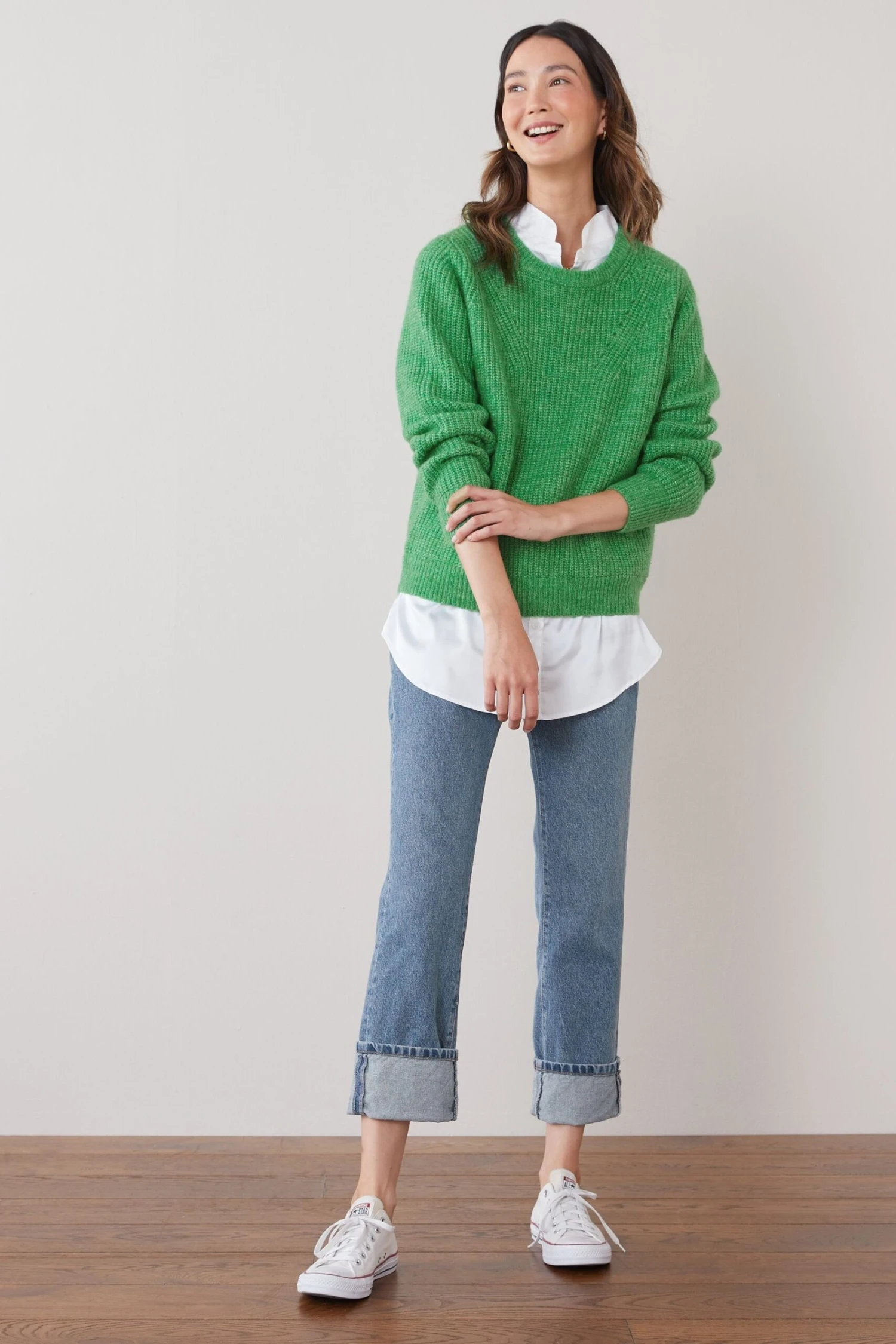 Langärmliger Pullover im Hemd-Lagenlook