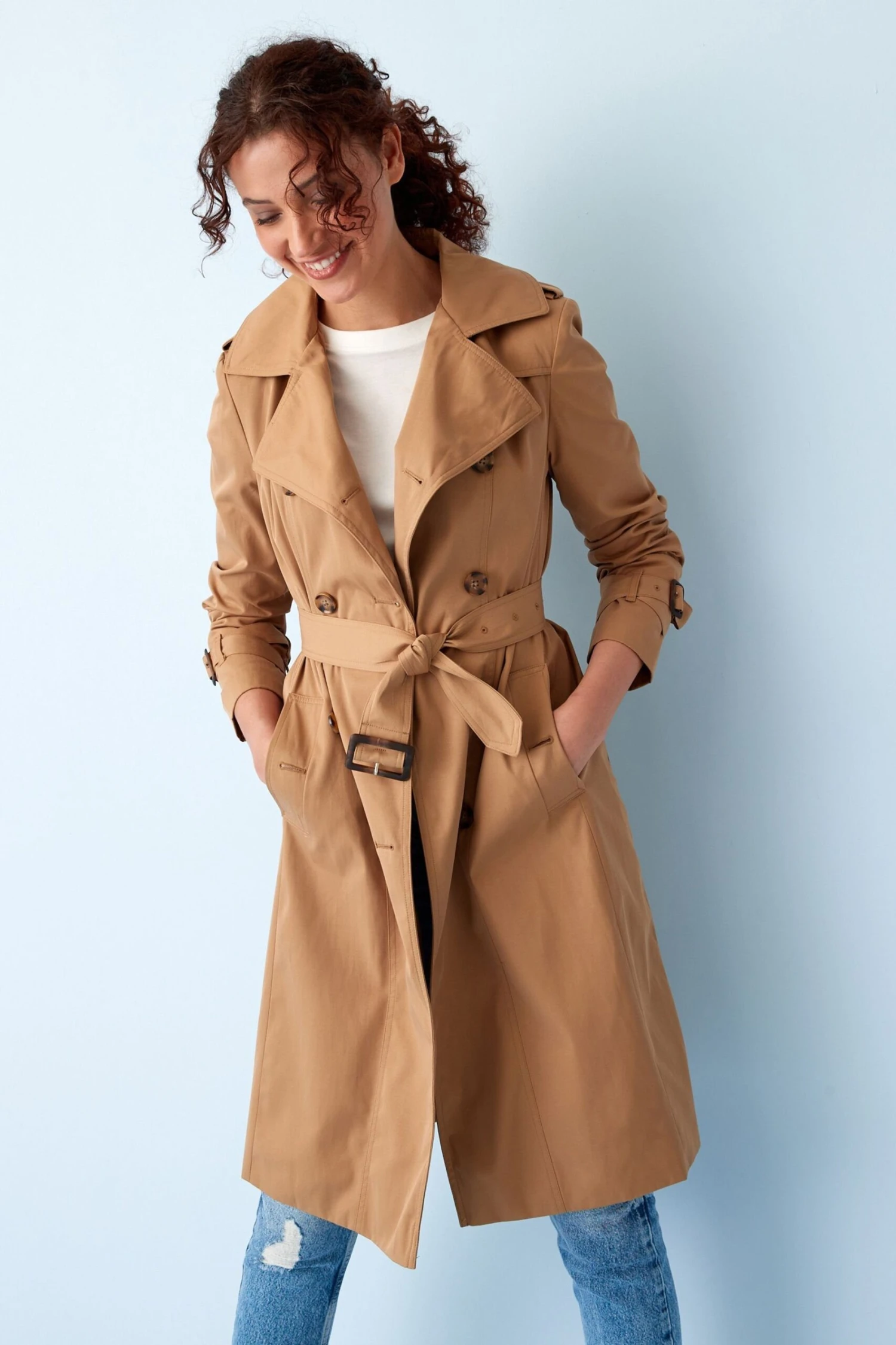 Trenchcoat mit Gürtel.