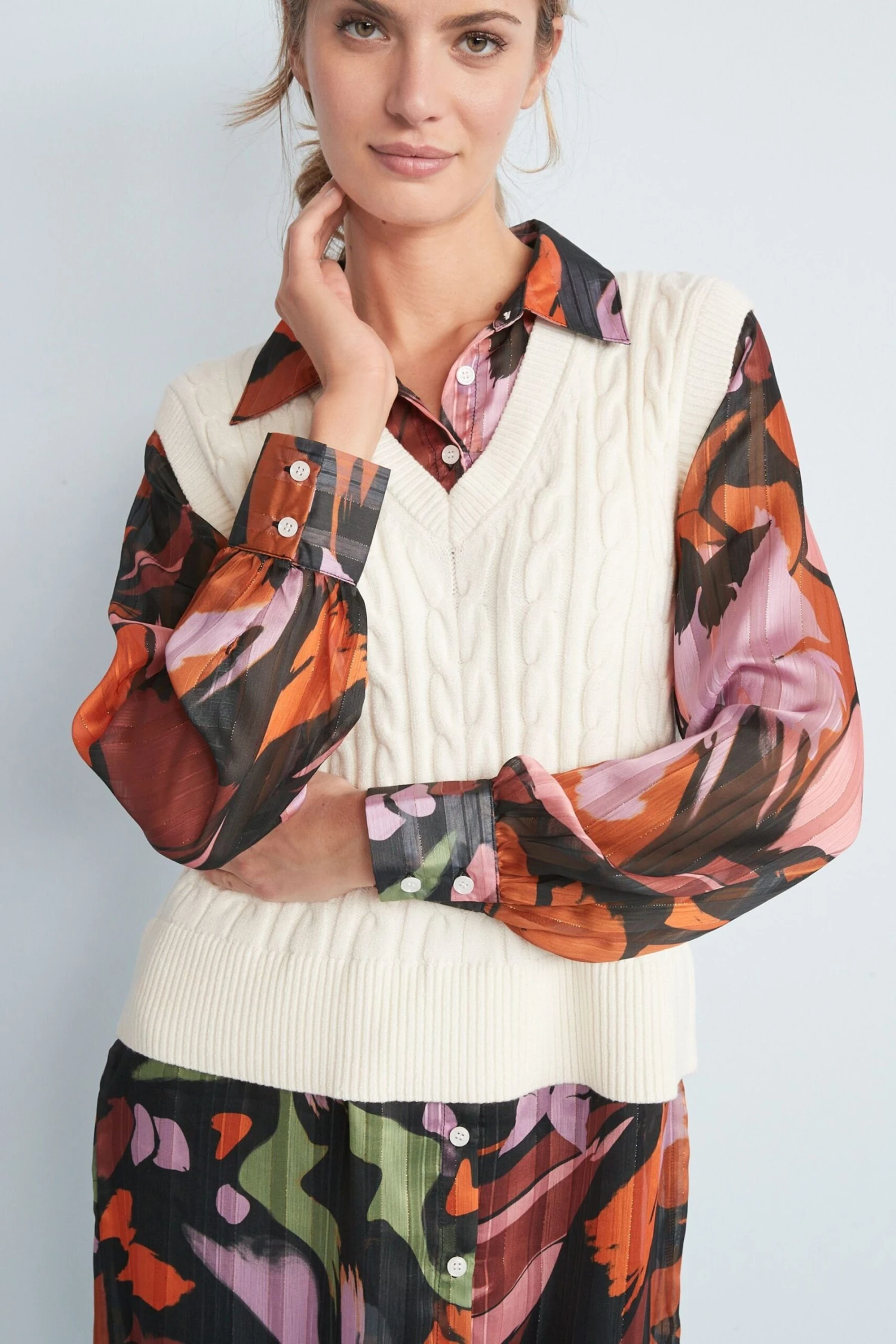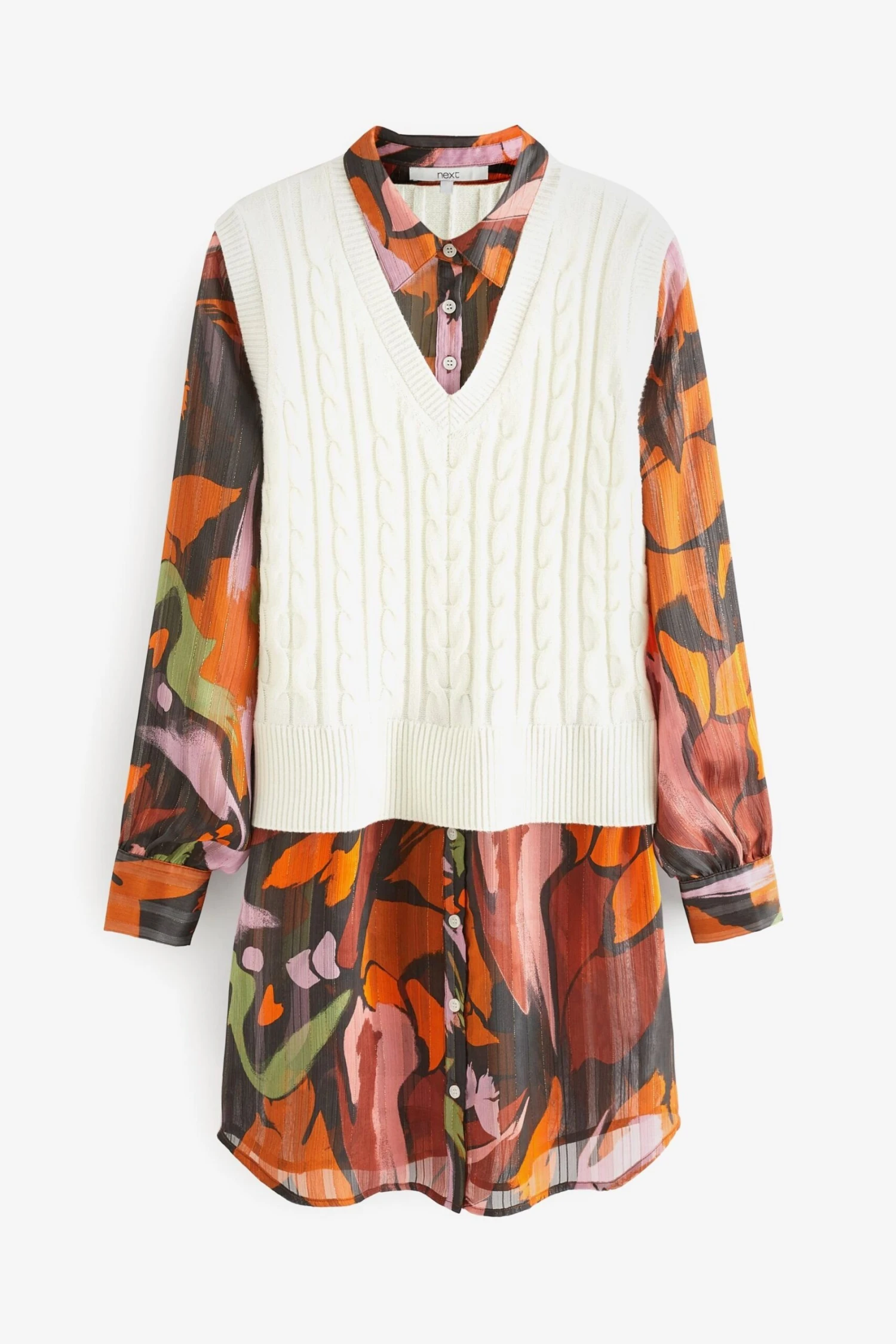 Next V-Ausschnitt-Pullover »Mehrlagiges Oberteil Mit Bedrucktem Hemdteil« (1-tlg)