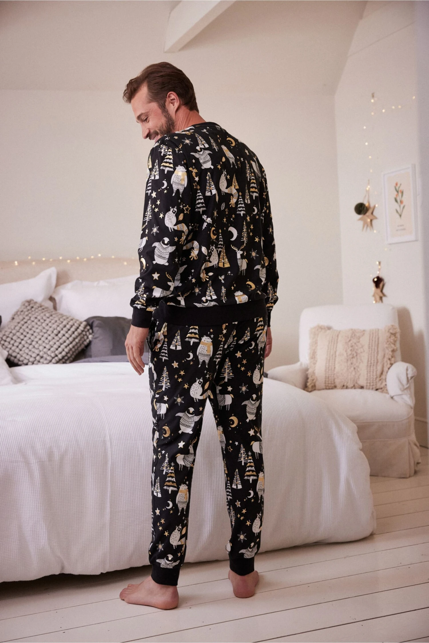 Schwarz/weiß – Next Herren Woodland Pyjama, Teil Der Familienkollektion