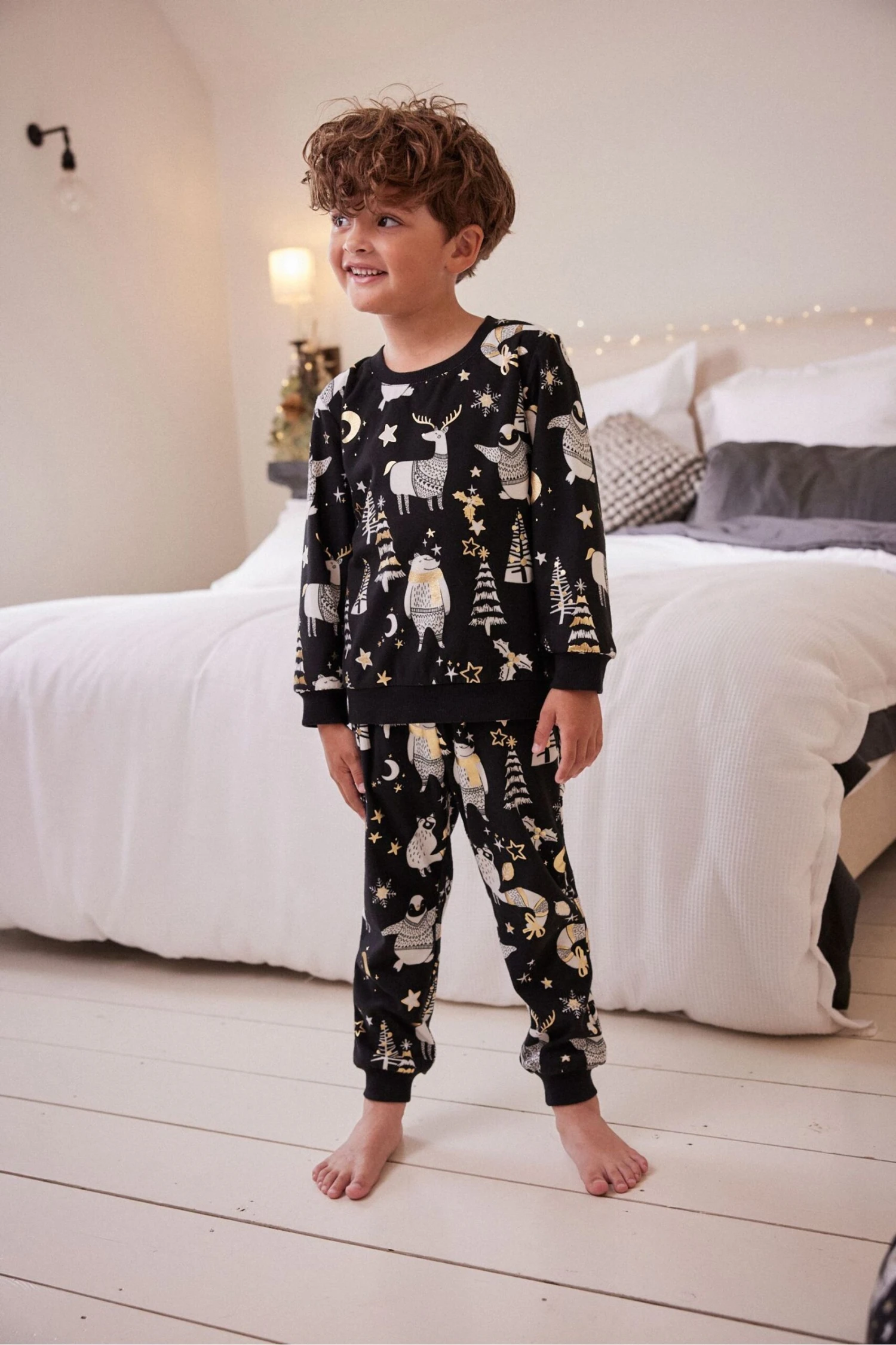 Schwarz/weiß – Next Matching Kinder Pyjama Mit Waldtieren, Familienkollektion (9 Monate Bis 16 Jahre)
