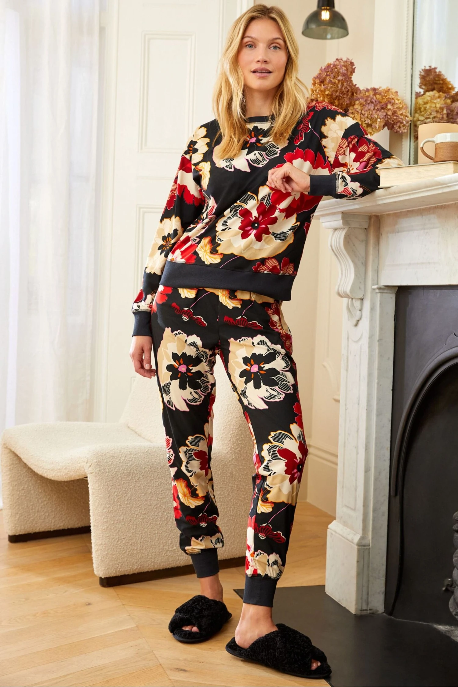 Schwarzes Florales Muster – Next Superweicher Kuscheliger Pyjam